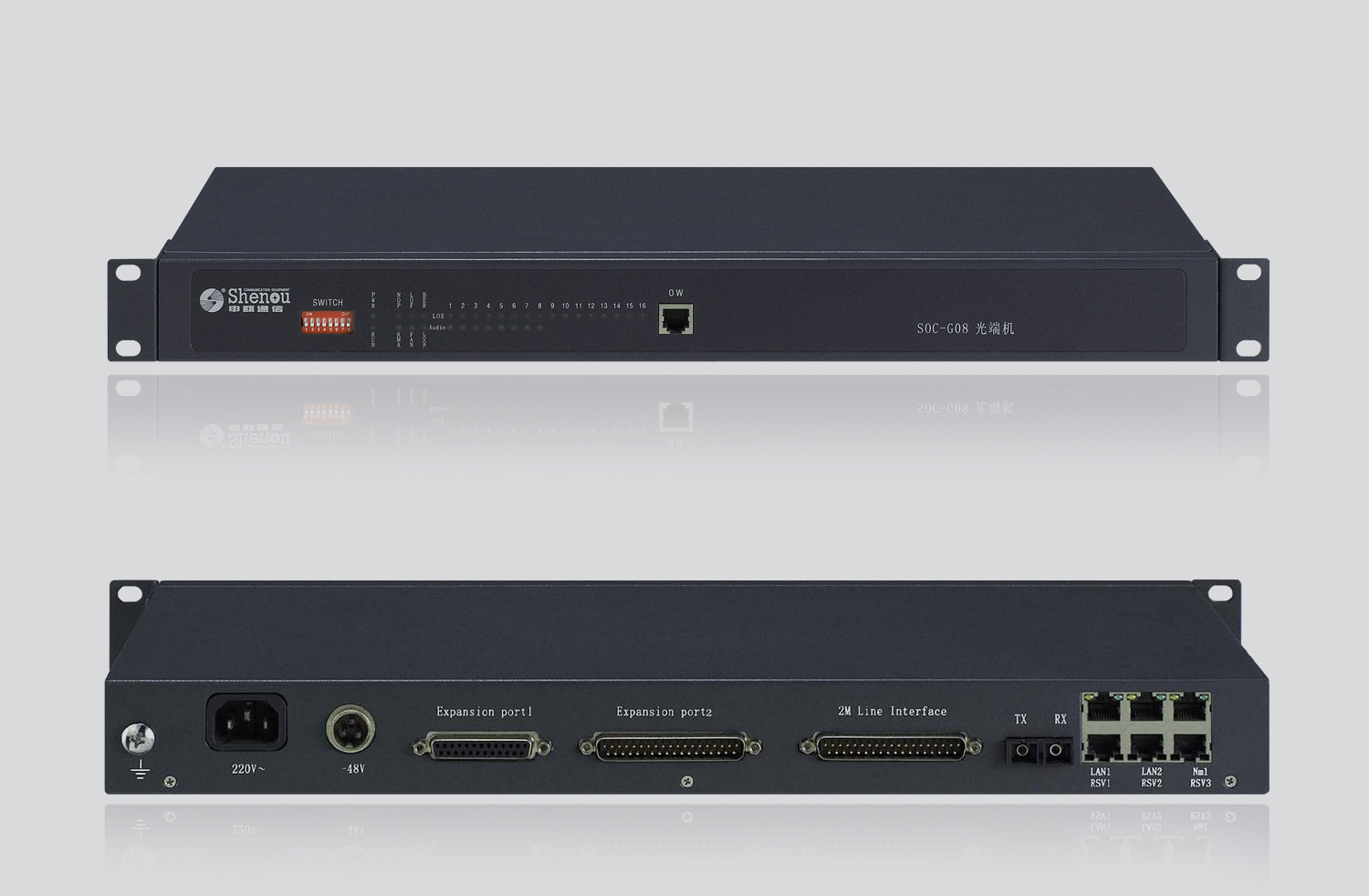 SOC-G08系列臺(tái)式多業(yè)務(wù)光端機(jī)是在原有光端機(jī)的基礎(chǔ)上進(jìn)行優(yōu)化設(shè)計(jì),主要提供4/8/16個(gè)E1,1至2路線速10/100M網(wǎng)口,1路異步數(shù)據(jù),4/8/16路語(yǔ)音,專(zhuān)為語(yǔ)音和數(shù)據(jù)接入及專(zhuān)網(wǎng)組網(wǎng)建設(shè)而開(kāi)發(fā)設(shè)計(jì)的綜合業(yè)務(wù)傳輸產(chǎn)品,還能附加上其它業(yè)務(wù),比如:2/4線音頻、磁石通道、E&M通道等.采用標(biāo)準(zhǔn)19英寸1U機(jī)箱,雙電源供電,滿(mǎn)足專(zhuān)網(wǎng)建設(shè)中2M、以太網(wǎng)、語(yǔ)音和異步數(shù)據(jù)等綜合業(yè)務(wù)的接入和傳輸。
